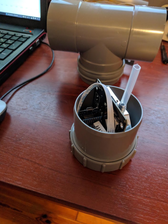 placed in a drainage t-section. The small tube is to keep insects and stuff out