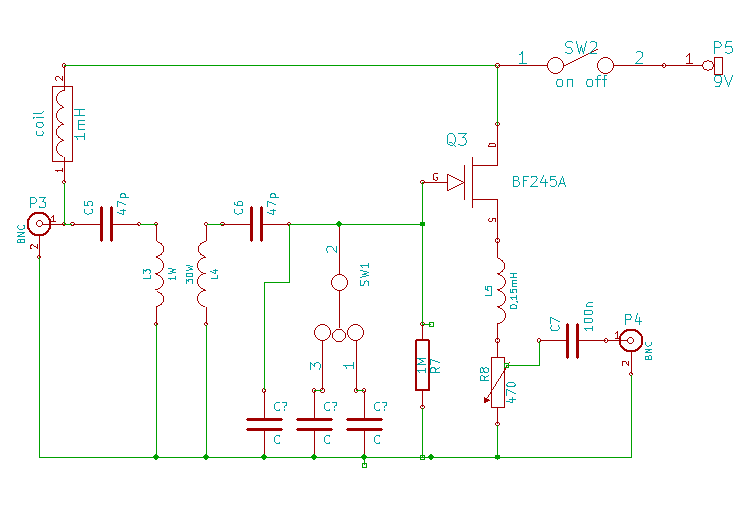 The power is supplied over the coax cable by placing 9V via 2 coils.
