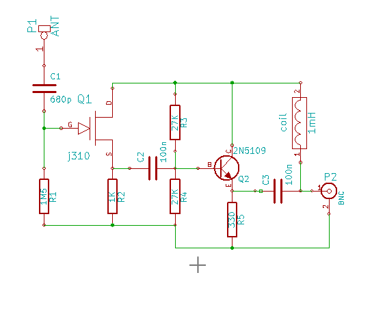 The principle is as follows: a high impedance input mosfet followed by a low impedance output BJT.