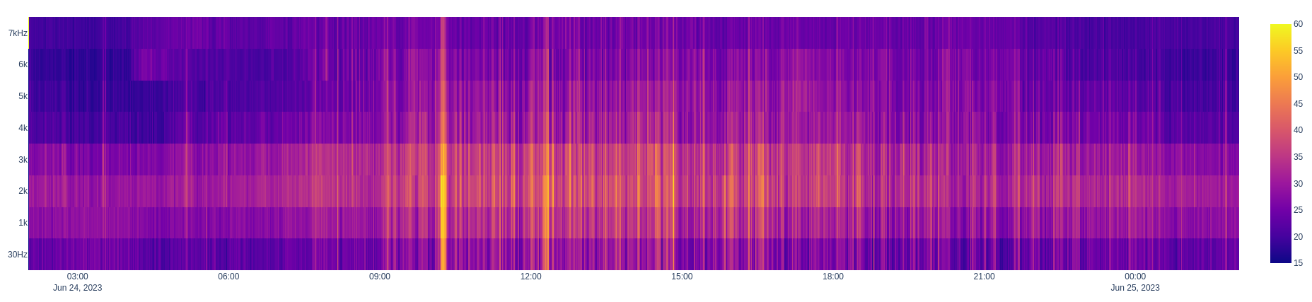 after a full day of recordings, the following carpet chart / heatmap can be generated.